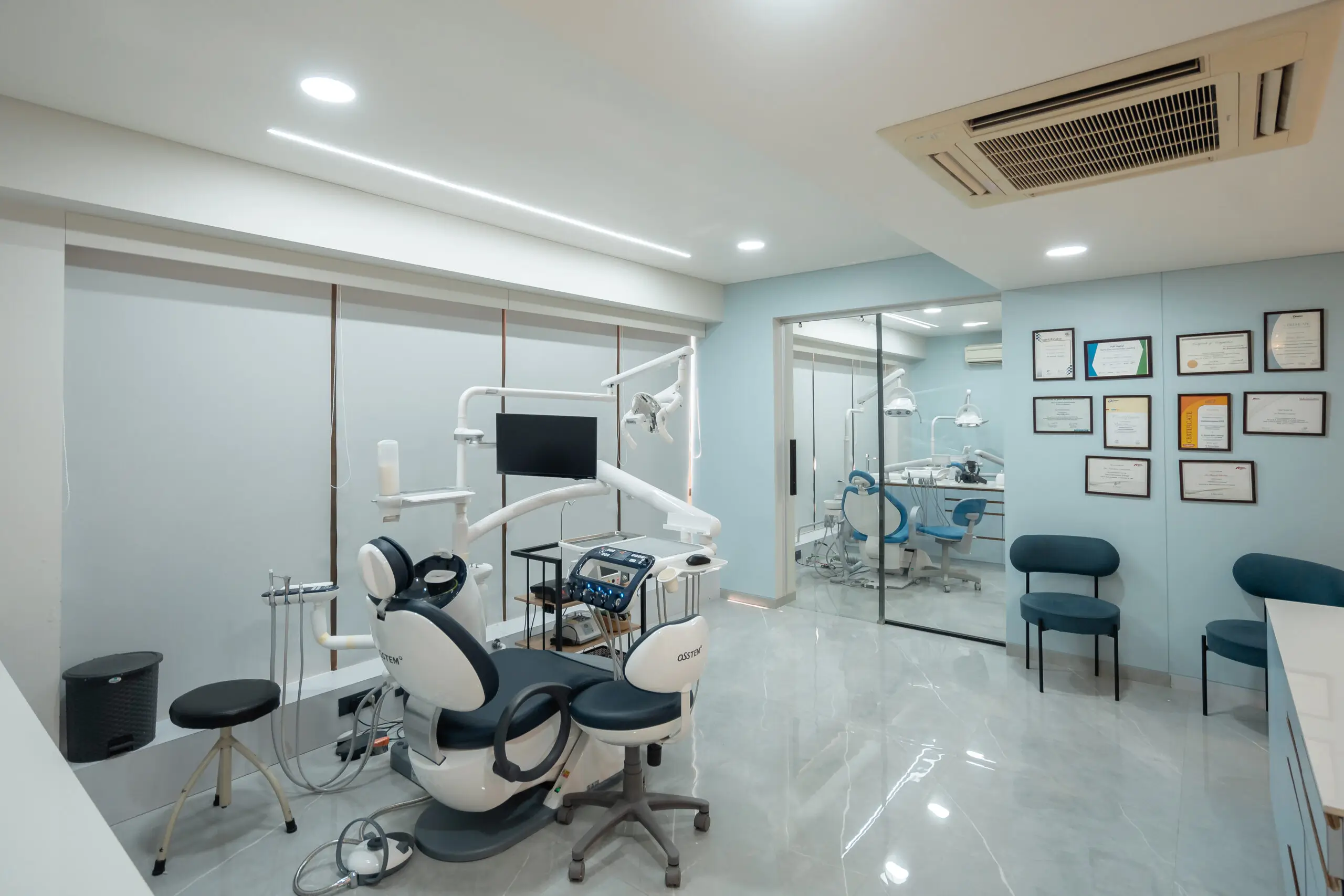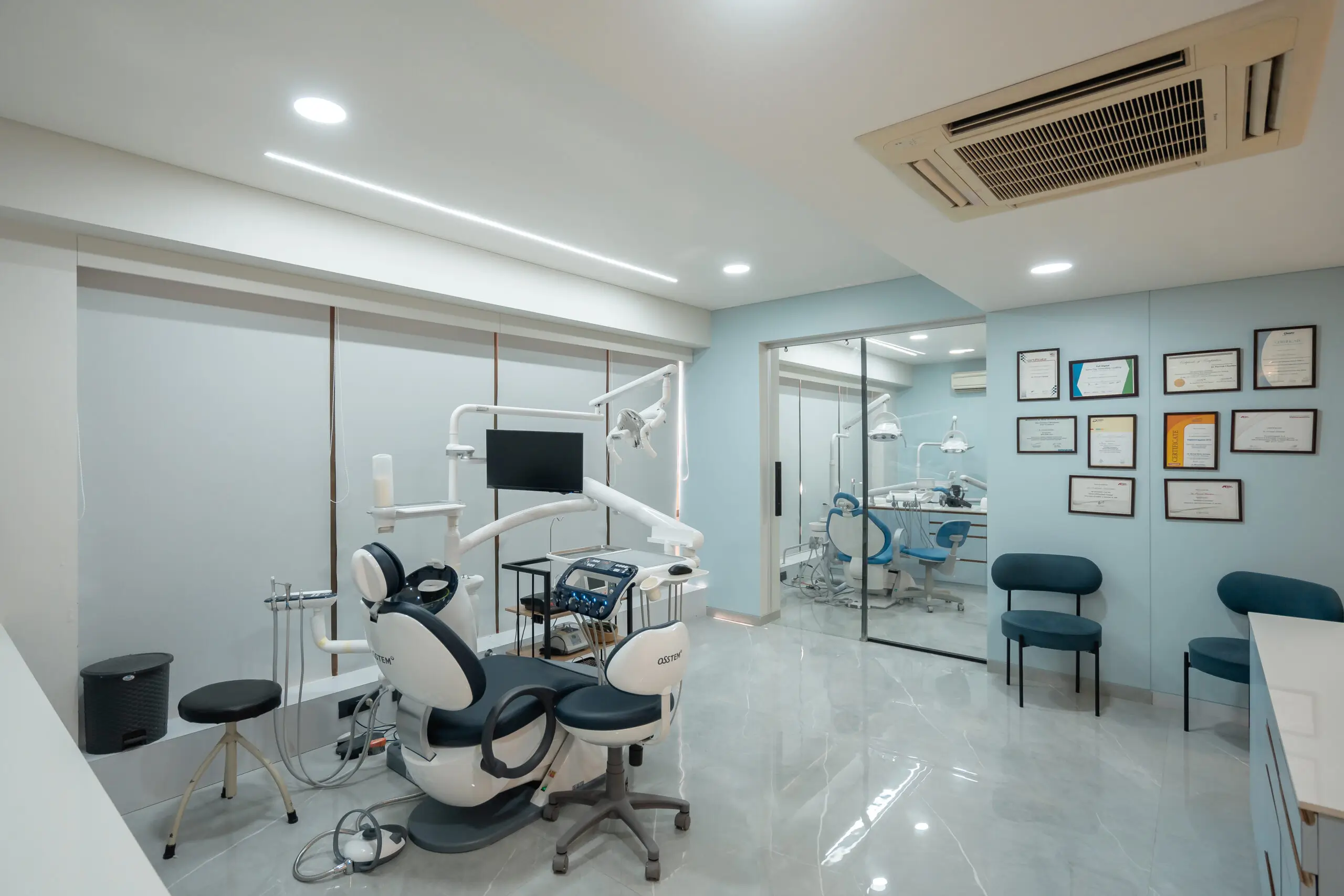 Keeping patients comfort in mind it’s designed Ergonomically. At the clinic all the patients are assured of the best services in dental health care in comforting & non- stressful ambiance.